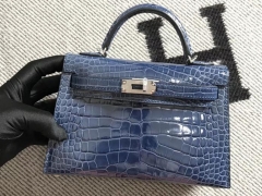 Hermès(爱马仕)Mini Kelly迷你凯莉包 美洲蓝 银扣 2代