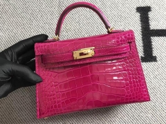 Hermès(爱马仕)Mini Kelly迷你凯莉包 美洲艳桃红 金扣 2代