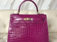 Hermès(爱马仕)Kelly28cm Crocodile shiny 亮面两点鳄鱼 J5 天方夜谭粉紫 金扣