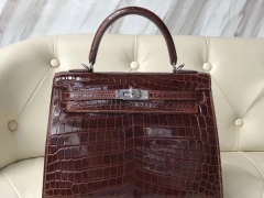 Hermès(爱马仕)kelly25cm Crocodile shiny 亮面鳄鱼 ck31 蜜糖棕 miel 银扣