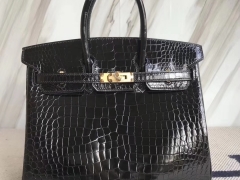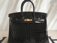 Hermès(爱马仕)Birkin25cm Crocodile shiny 亮面鳄鱼 ck89 黑色 金扣