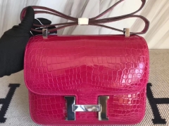 Hermès(爱马仕)Constance24cm Crocodile shiny 亮面鳄鱼 J5 天方夜谭粉紫 银扣