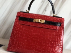 Hermès(爱马仕)Kelly28cm Porosus shiny 亮面 澳洲湾鳄鳄鱼 ck95 法拉利红ck89 黑色 马蹄印金扣