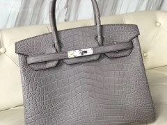 Hermès(爱马仕)Birkin30cm Crocodile matt 雾面鳄鱼 银河灰 银扣 现货
