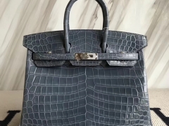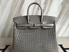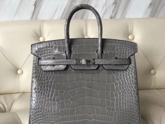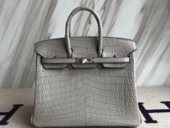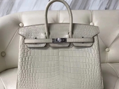 Hermès(爱马仕)Birkin25cm Alligator shiny亮面鳄鱼 浅灰 银扣 气质灰 现货