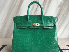 Hermès(爱马仕)Birkin25cm Crocodile shiny 亮面鳄鱼 6Q 翡翠绿 金扣