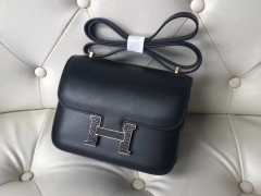 Hermès(爱马仕)Constance18cm Box calf ck89 黑色 蜥蜴扣 金扣