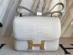 Hermès(爱马仕)Constance24cm Alligator matt 雾面鳄鱼 8L 奶油白 Beton 金扣