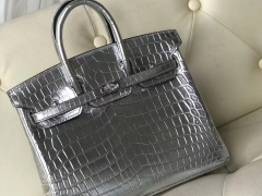 Hermès(爱马仕)Birkin25cm Crocodile shiny 银色亮面鳄鱼 银扣