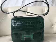 Hermès(爱马仕)Constance18cm Alligator shiny 亮面鳄鱼 ck67 祖母绿蜥蜴扣 银扣 限量现货
