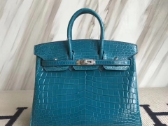 Hermès(爱马仕)Birkin25cm Crocodile shiny 亮面鳄鱼 7w 伊兹密尔蓝 Blue izmir 银扣