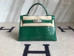Hermès(爱马仕)Minikelly ll Alligator shiny 亮面鳄鱼 6Q 翡翠绿 银扣