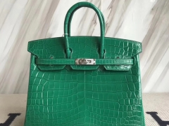 Hermès(爱马仕)Birkin25cm Crocodile shiny 亮面鳄鱼 6Q 翡翠绿 银扣