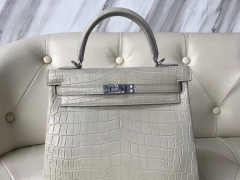 Hermès(爱马仕)Kelly25cm Crocodile matt 雾面鳄鱼 8L 奶油白Beton 银扣