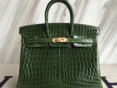 Hermès(爱马仕)Birkin25cm Crocodile shiny 亮面鳄鱼 ck67 祖母绿 金扣