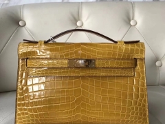 Hermès(爱马仕)Minikelly pochette Alligator shiny 亮面鳄鱼9D 琥珀黄 Ambre 金扣