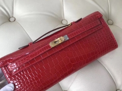Hermès(爱马仕)Kelly cut 31cm Porosus shiny 亮面澳洲湾鳄 ck95 法拉利红 Braise 金扣