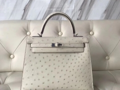 Hermès(爱马仕)Kelly25cm Ostrich kk鸵鸟 3C 羊毛白 银扣