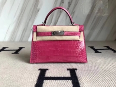 Hermès(爱马仕)Minikelly ll Alligator shiny 亮面鳄鱼 5J 桃粉 银扣
