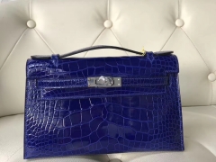 Hermès(爱马仕)Minikelly pochette Alligator shiny 亮面鳄鱼7T 电光蓝 Blue eletric 银扣 手抓包 晚宴包