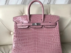 Hermès(爱马仕)Birkin25cm Crocodile shiny 亮面两点鳄鱼 5Z 印度粉 银扣