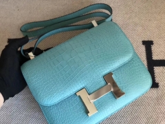 Hermès(爱马仕)Constance24cm Alligator matt 雾面鳄鱼 3Z 圣西尔蓝 银扣