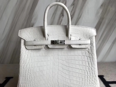 Hermès(爱马仕)Birkin25cm Crocodile matt 雾面鳄鱼 01 纯白 白雪公主 White 银扣