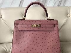 Hermès(爱马仕)Kelly25cm Ostrich kk 鸵鸟 玫红