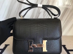 Hermès(爱马仕)Constance24cm Alligator matt 雾面鳄鱼 ck89 黑色 银扣