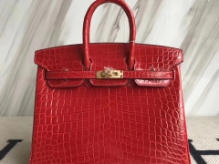 Hermès(爱马仕)Birkin25cm Crocodile shiny 亮面鳄鱼 ck95 法拉利红 Braise 金扣