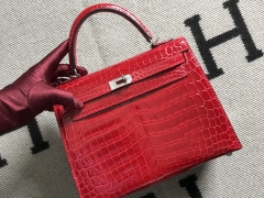 Hermès(爱马仕)Kelly 凯莉包 大红色 银扣 25cm