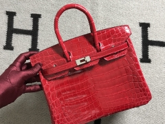 Hermès(爱马仕)Birkin 铂金包 大红色 银扣 25cm