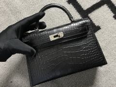 Hermès(爱马仕) Mini Kelly迷你凯莉 美洲黑雾面 银扣 2代