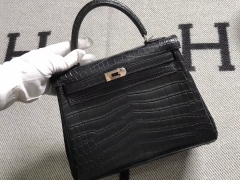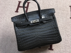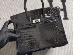 Hermès(爱马仕)Birkin 铂金包 黑色 湾鳄 银扣 25cm
