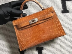 Hermès(爱马仕) Mini Kelly迷你凯莉 土黄色 银扣 2代