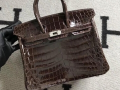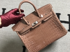 Hermès(爱马仕)Birkin 铂金包 褐色 银扣 25cm