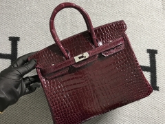 Hermès(爱马仕)Birkin 铂金包 酒红色 湾鳄 银扣 25cm