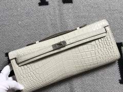 Hermès(爱马仕)Kelly Cut长款手包 浅灰色 银扣 2代