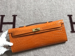 Hermès(爱马仕)Kelly Cut手包 橙色 金扣 2代