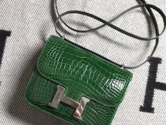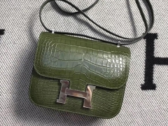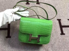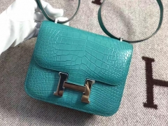 Hermes爱马仕 Constance 19 孔雀绿 美洲鳄亚光 银扣
