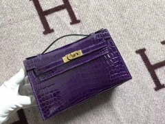 Hermès(爱马仕) Mini Kelly迷你凯莉 葡萄紫 鳄鱼皮 金扣 22cm
