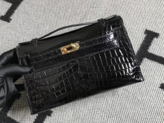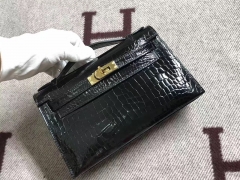 Hermès(爱马仕) Mini Kelly迷你凯莉 黑色 鳄鱼皮 金扣 22cm