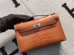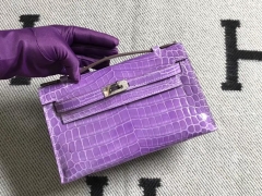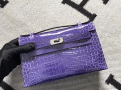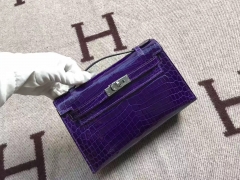 Hermès(爱马仕) Mini Kelly迷你凯莉 紫色 鳄鱼皮 银扣 22cm