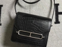 Hermes Roulis 猪鼻子包 美洲鳄鱼皮 黑色银扣