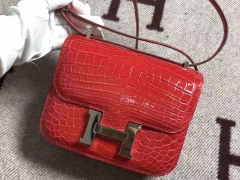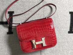 Hermes 爱马仕空姐包 Constance 19CM 鳄鱼皮 大红色 银扣