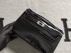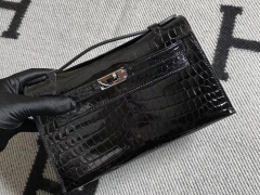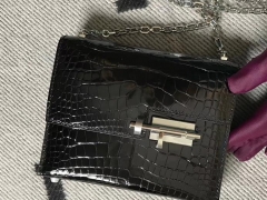 Hermès(爱马仕) Mini Kelly迷你凯莉 黑色 鳄鱼皮 银扣 22cm