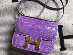 Hermes爱马仕 Constance 19 薰衣草紫 亮面 银扣