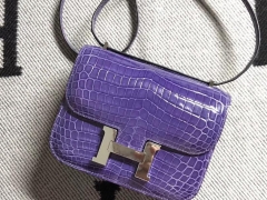 Hermes爱马仕 Constance 19 蓝紫色 亮面 银扣