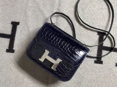 Hermes爱马仕 Constance 19 深蓝色 亮面 银扣