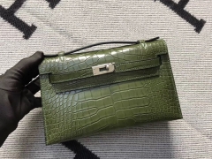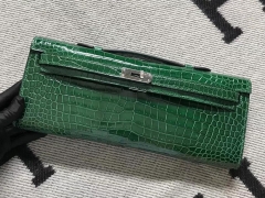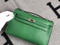 Hermes KellyCut 手拿包 鳄鱼皮 湾鳄 祖母绿 银扣